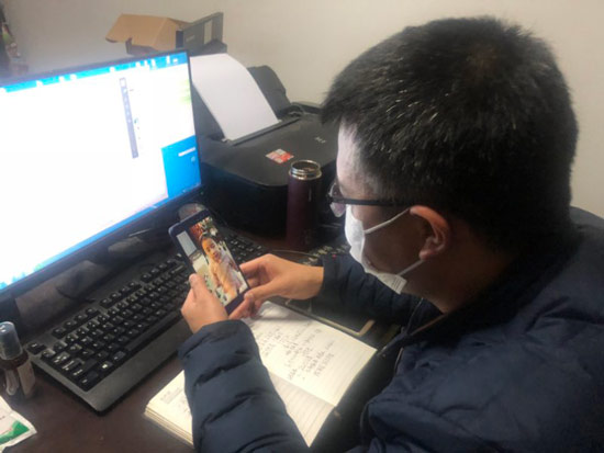 张晓光抽空和女儿视频。人民网湖北频道肖璐欣 摄