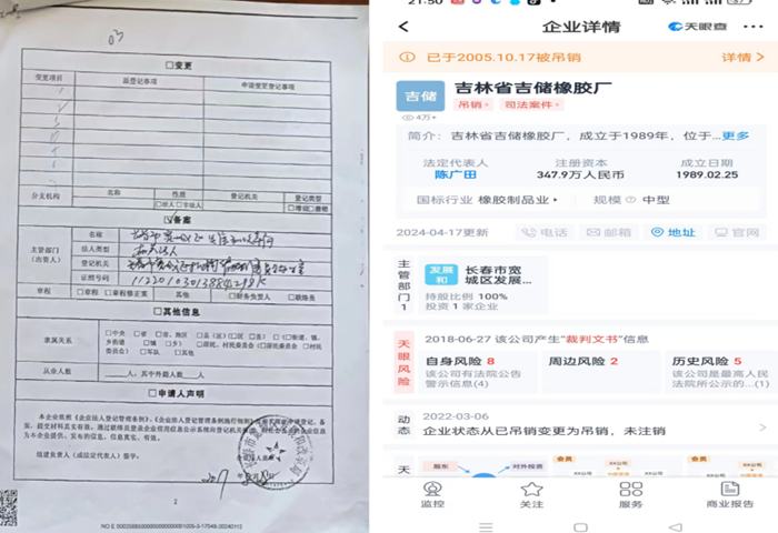 陈广田向媒体反映:2017年8月28日,吉林省市场监管厅审批办涉嫌违反法定程序、不按照《非公司企业法人登记提交材料规范》(2014年版)规范要求办理备案登记事项。王淑英、陈宇、刘革铭等人涉嫌帮助长春市宽城区发改局强抢集体企业吉林省吉储橡厂100%股权。具体情况如下: