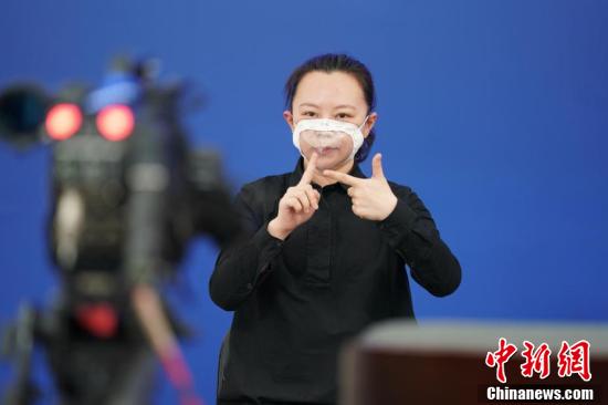 2月10日,北京市举行新型冠状病毒感染的肺炎疫情防控工作新闻发布会。图为发布会现场的手语播报员进行手语播报。中新社记者 苏丹 摄