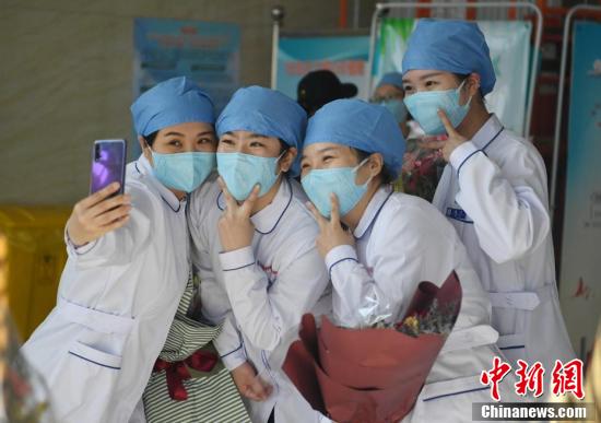 2月19日,吉林省长春市传染病医院的第二梯队医护人员合影留念。此前,由27名医护人员组成的第二梯队顺利完成第二阶段的工作任务,从新冠肺炎防疫一线撤离,轮休调整。中新社记者 张瑶 摄