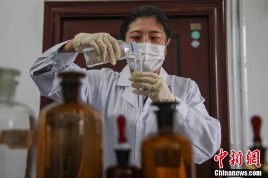 3月3日,一名水质化验工在化验水质。中国铁路成都局集团有限公司贵阳供电段有一支特殊的队伍,是其管辖的管道工和水质化验工,他们主要负责贵州省贵阳北、贵阳东高铁枢纽一带管道维护和水质检测工作。中新社记者 瞿宏伦 摄