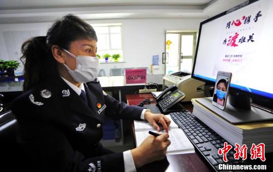 2月7日,新疆乌鲁木齐市八一片区管委会心理疏导小分队队长、片区司法所长阿依古力·阿不都拉通过视频连线为社区居民进行心理疏导。该心理疏导小分队由国家二级心理咨询师、高校心理辅导老师、医院心理医生等6名人员组成,通过电话、视频等方式对辖区16个社区的居民进行心理疏导。中新社记者 刘新 摄