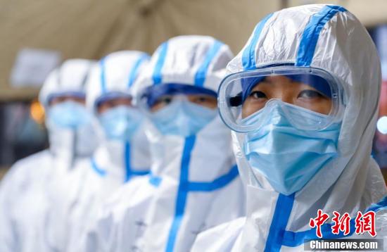 2月7日晚,医护人员做好准备即将进入武汉客厅“方舱医院”进行工作。当日,武汉客厅“方舱医院”开始接受诊治第一批新冠肺炎轻症患者。中新社记者 张畅 摄