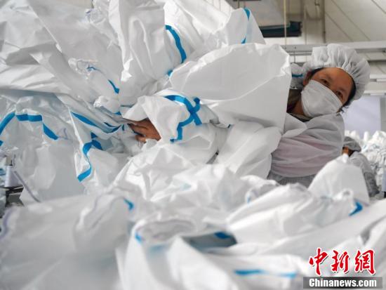 2月17日,位于河北石家庄的际华3502职业装有限公司二分厂生产车间内,工人们在生产线上有条不紊地忙碌着。中新社记者 翟羽佳 摄
