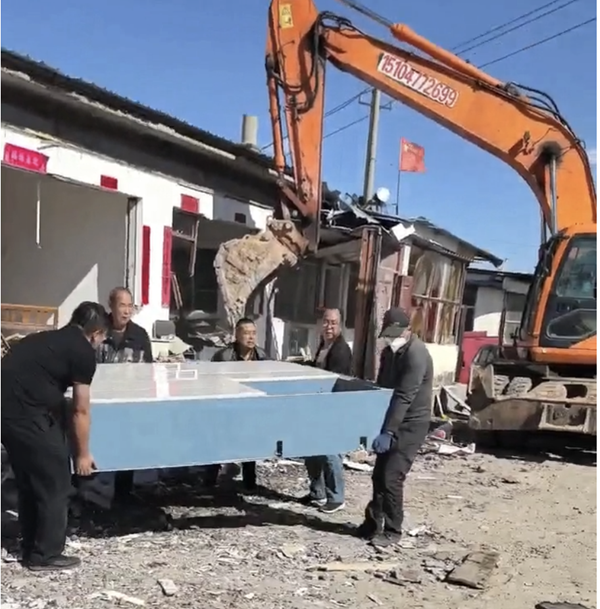 经过第一次的强迁并进了派出所,李济元本以为能消停了,可是,一周之后的9月30日,这天挖掘机来的特别早,见李济元的车横在大门口无法进入,便绕行到厂区西南角,先将此处的铁围栏推到后,从高处砸毁了厂区内的公共厕所,并将高处的树木等一并推倒。李济元报了警,还是天骄路派出所出的警,这回,民警只将李济元带回了派出所。李济元被带走后,这回厂区里无人可挡,挖掘机大显伸手,厂区大部成了一片废墟,连李济元的办公室、财务室全被推掉,大部分文件和财务帐目都被扔进他们的皮卡车里。此时,还在派出所里接受审查的李济元还不知道厂里发生的事,他心急火燎,急于回厂,但是,派出所哪能让他回去?这天晚上他被留置送进了执法办案中心,次日上午办案民警告知被行政拘留5天,理由是“涉嫌扰乱施工”,当晚被送进拘留所。