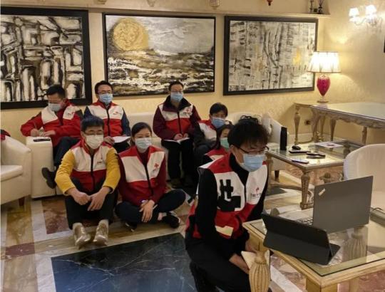 清晨我们通用过视频会议将后续的工作安排敲定,支援小组将在驻意大利使馆的领导下,与意大利卫生部、红十字会及其他相关部门密切合作,充分交换意见,分享中国抗疫经验,共同推进意大利疫情防控工作,而我负责医疗护理经验介绍,并做好全队人员感染防控工作,正式拉开了我们在意大利战疫的序幕。
