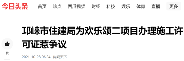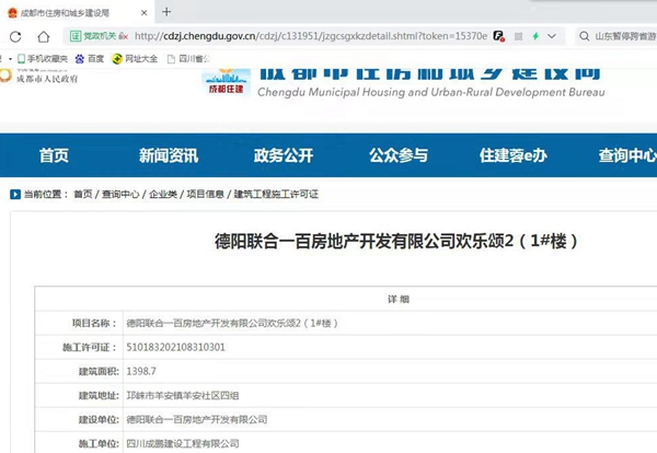 2021年7月20日,德阳一百公司取得了“欢乐颂二”项目《建设工程规划许可证》。