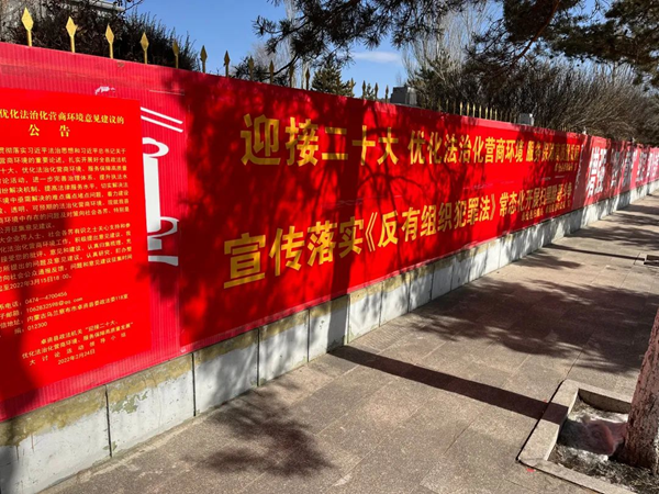 在工业园区和企业附近、卓镇城区人员密集场所张贴《关于征集优化法治化营商环境意见建议的公告》50张,悬挂以法治化营商环境为主要内容的宣传横幅30余条。充分发挥传统宣传方式的优势,大力宣传全县政法机关优化法治化营商环境的信心决心及征求意见的主要渠道。