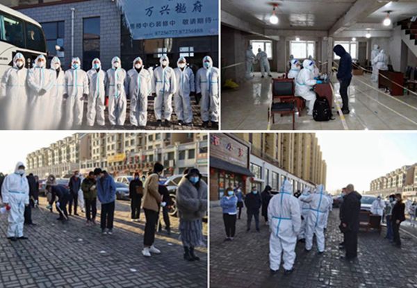 3月10日,德惠启动第一轮全员核酸检测。早上5点钟,前进社区御景华城核酸检测点就迎来了第一批防疫队伍——德惠市环卫处工作队。12名队员全部到岗,他们有条不紊地穿戴好防护服,迅速到室外布置警戒线。正是春寒料峭的季节,早上的气温依旧非常低,大家的手冻得不听使唤,但没有一个人喊冷,都想着要在居民排队前把准备工作做好。