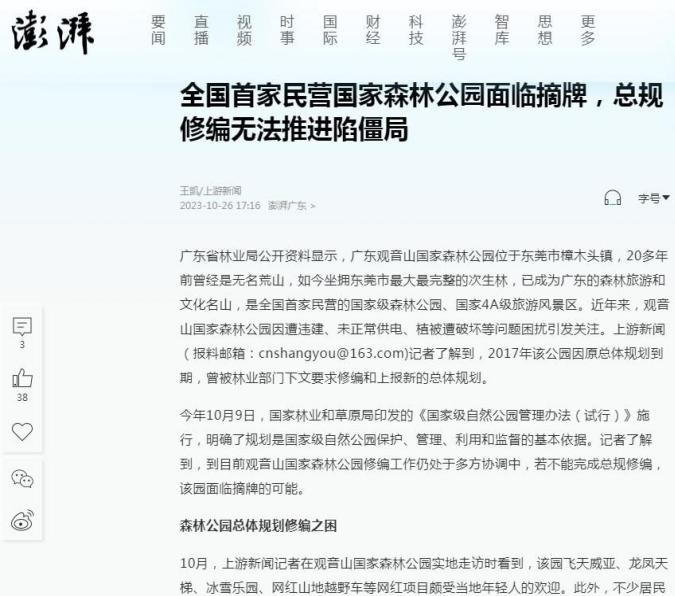 上游新闻/澎湃新闻:观音山国家森林公园面临摘牌