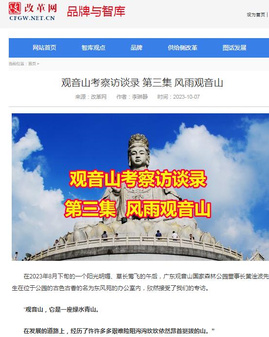 中国改革报.改革网《观音山考察访谈录第三集 风雨观音山》,除此报道外,还有多篇关于观音山的