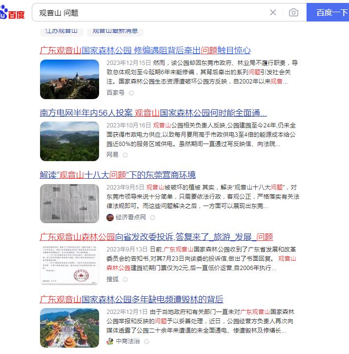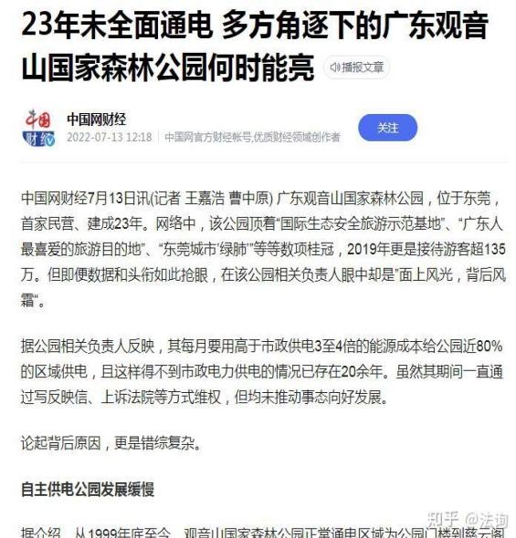 中国网《23年未全面通电多方角逐下的广东观音山国家森林公园何时能亮》