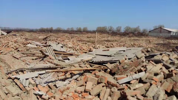 仅仅不到两天的时间,李岩家的49栋温室和2栋大棚便被夷为平地。