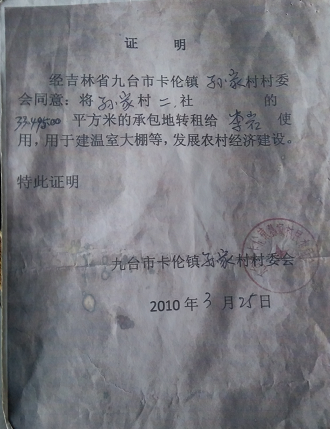 2010年初,李岩与当地的李姓村民达成4.3019平方米的农用地租赁意向,当年3月,在当地村委会见证下,双方形成了土地租赁合同。