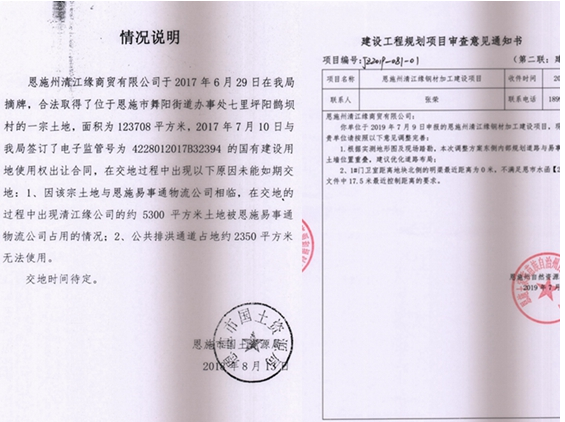 经勘测,该宗土地使用权面积中东面是一条泄洪溪沟和泄洪天坑,约1435平方米,泄洪通道属不应出让土地,恩施市自然资源和规划局在明知此情况下违法供地。该宗土地使用权面积中有7.98亩已实际违法供给恩施州易事通汽车运输有限责任公司长期占用不能交付。针对以上两项违法供地事实,清江缘公司自2017年7月起多次同恩施市自然资源和规划局交涉,均未得到解决。