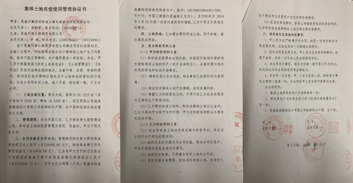 上图为清江缘公司与村集体土地有偿使用管理协议书。
