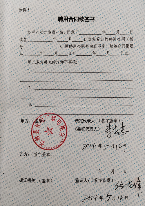 图为:长岭县广播电视台与张晓峰签署的《聘用合同》封面