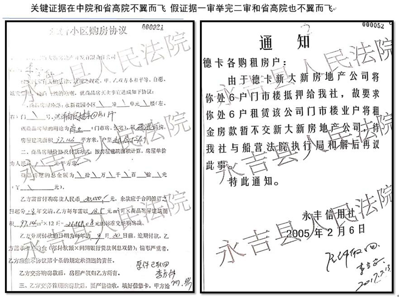 不仅如此,在省高院,不仅关键证据——购房协议被消失,法官居然还采信假证。此案中,所谓“永丰信用社的通知”没有加盖单位公章,是假的!但是,居然被一审、二审甚至省高院采信了,一审、二审还能各打五十大板,而省高院直接将关键证据消失,并依据假证和法官的推测判德卡公司败诉!真是堪称奇葩,滑天下之大稽!