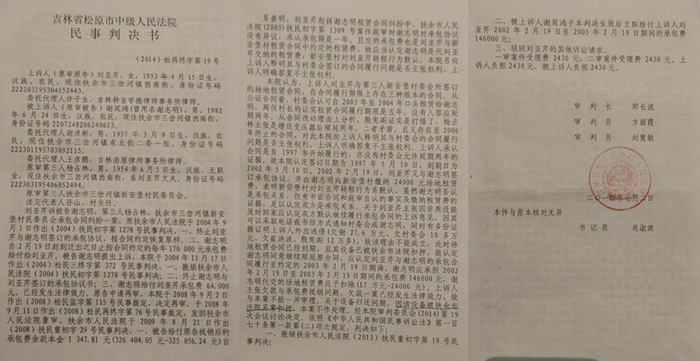 本站讯 在吉林省松原市下辖的扶余市三岔河镇,刘亚琴、杨占林夫妇和谢志明(既谢双鸿)曾经因为一桩债务纠纷,打了12年官司,最终,松原市中级人民法院判决认定,刘亚琴、杨占林夫妇并不欠谢志明的钱,而是谢志明欠刘亚琴夫妇的租赁费、承包费,但是判决生效都六年多了,法院却拒不解除当初的扣押,刘亚琴夫妇多次去找扶余法院,法院却推三阻四,就是不给终止执行。