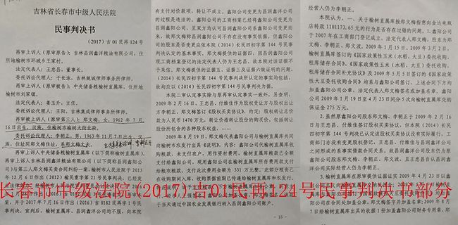判决书显示,长春中级法院的主审法官是史绍红。(2017)吉01民再124号民事判决书做出之后,王忠昌、傅维鑫就向有关部门发出实名举报,二人在给长春市中级法院院长程凤义的实名举报信中说: