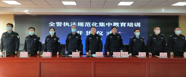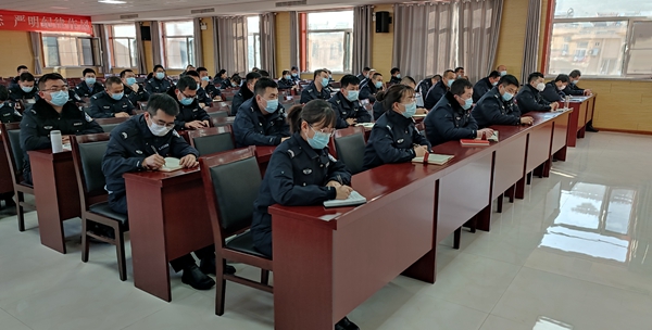 本站讯 为扎实推进“坚持政治建警,全面从严治警”教育整顿,贯彻落实大队“2.18”收心会议精神,进一步加强执法规范化建设,切实提升全队民辅警的执法理念和执法水平,2月20日(正月初九)上午,陕西省绥德县公安局交通管理大队在大队机关四楼会议室举行了由大队领导班子和首批参训民辅警参加的“2021年春季全警执法规范化集中练兵培训开班仪式”,全面拉开了牛年新春练兵序幕。