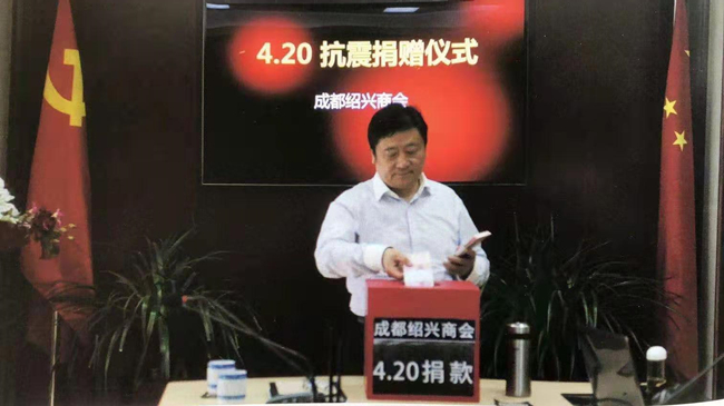 在成都绍兴商会的感召下刘煊苗对四川庐山4.20地震受难者进行捐赠