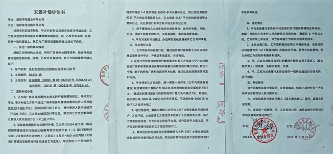 2014年6月25日,开发商洛阳宇瑞置业有限公司(以下简称宇瑞公司)与洛阳炼化拉膜有限公司(以下简称拉膜公司)签定《安置补偿协议书,协议》,其中约定拉膜公司所拥有的30.634亩的土地交由宇瑞公司开发,宇瑞公司采取以第一期第一批9337平方房屋置换的方式对拉膜公司进行补偿。洛阳市中级人民法院、栾川县人民法院、涧西区人民法院、西工区人民法院、洛龙区人民法院以及吉利区人民法院都先后按照《安置补偿协议》约定的房产对1号楼进行查封。难道两级六个法院都对《安置补偿协议》理解错了吗?难道两级六个法院都查封错了吗?难道只有开发商找的法官理解是对的吗?开发商宇瑞公司因不打算履行交付安置补偿房的义务,因为徐六生“套路贷”的原因,宇瑞公司于2018年末,在洛阳市吉利区法院对拉膜公司提起诉讼。一审法官和二审法官均不完整、全面地把握《安置补偿协议书》的约定,在审理中断章取义,将必须在第一期第一批投资建设用于置换安置补偿房的条款摒弃,把拉膜公司应得的安置补偿房判定在既未规划又未开建的空地上,这种案例在全国范围内也是闻所未闻,使得开发商以“合法的名义”,白捡了一亿多元的资产,而拉膜公司只剩下一纸协议。一百多位受害人和债权人翘首以待的安置补偿房没有了着落,所有债权人不得不到处上访信访。