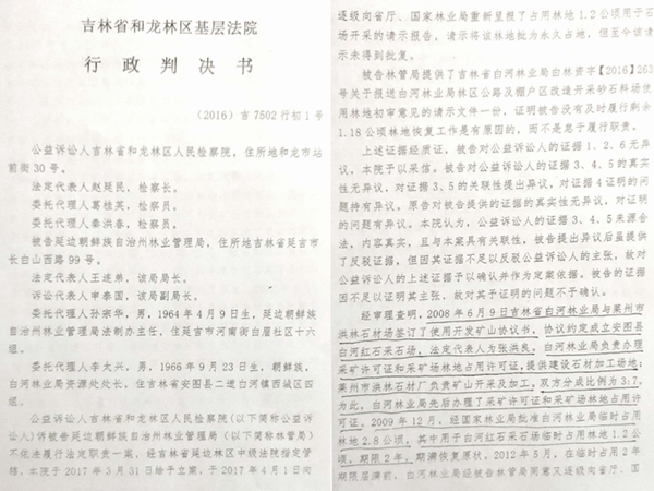 据吉林省和龙林区基层法院(2016)吉7502行初1号行政判决书记载: