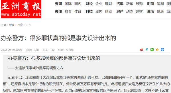 记者手记:连续四篇《大连徐氏家族涉黑案再调查》的刊发,记者的目的只有一个,那就是“还原案件的真相”。还原真相本是每个记者的职责所在,但让记者万万没有想到的是,此报道能在大连乃至辽宁产生如此大的反响,就如同对着空旷的山谷一声呼喊,而自己却被滚滚雷鸣般的回声惊呆了。但记者知道,这并不是什么文字和新闻的力量,而是百姓对事实和真相的渴望,更准确地说,是对徐氏家族遭遇的气愤与不平……