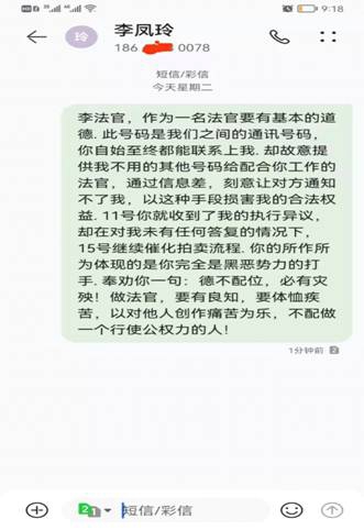 【当事人给盛宝典当案件威海经区执行法官发的短信】