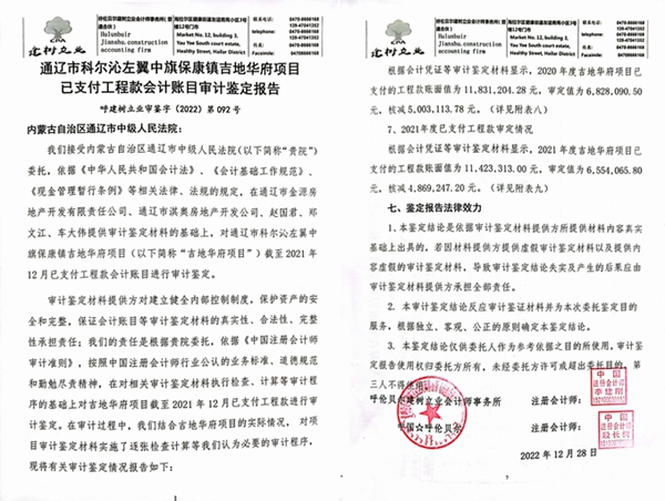 科尔沁左翼中旗,简称科左中旗,其旗政府所在地就是保康镇,而保康镇吉地华府小区是一个棚户区改造项目。对于该项目的经济纠纷,媒体曾经多次报道。据媒体报道,2014年4月初,通辽市科左中旗保康镇棚户区改造项目对外发包,工程建筑总面积为87696.82平方米。吉林省长春市人徐凤琴与开发商签订了《建筑工程施工合同》并进行了施工。2018年10月1日,吉地华府小区完工后,开发商却没有按照合同约定给付徐凤琴工程款。为了讨回巨额工程款,徐凤琴历经多年诉讼最终胜诉,通辽市中级法院作出(2020)内05民初158号民事判决书,判决三名开发商向徐凤琴支付尾欠工程款31018965.80元以及利息,随后通辽市中级法院将开发商位于吉地华府的相关房产进行了查封,用于偿还徐凤琴的工程款。哪曾想,半路上杀出来一个程咬金,车大伟、赵国君、郑文江在给排水工程款纠纷案中败诉,科左中旗法院查封了他们在吉地华府的房产。法院的查封公告(2023)内0521执462号)称:“本院依据已经发生法律效力的(2022)内05民终2929号民事判决书,受理了于德富申请执行通辽市金源房地产开发有限责任公司、通辽市淇奥房地产开发有限公司、车大伟、赵国君、郑文江建设工程合同纠纷一案,因被执行人通辽市金源房地产开发有限责任公司、通辽市淇奥房地产开发有限公司、车大伟、赵国君、郑文江至今未履行生效法律文书确定的义务。本案在执行过程中,查封并拟处置通辽市金源房地产开发有限责任公司、通辽市淇奥房地产开发有限公司开发建设的如下房屋......”