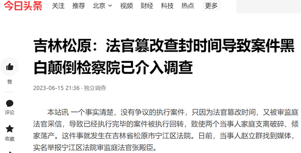 本站讯 一个事实清楚,没有争议的执行案件,只因为法官篡改时间,又被审监庭法官采信,导致已经执行完毕的案件被执行回转,致使两个当事人家庭支离破碎、倾家荡产。这件事就发生在吉林省松原市宁江区法院。日前,当事人赵立群找到媒体,实名举报宁江区法院审监庭法官张殿臣。