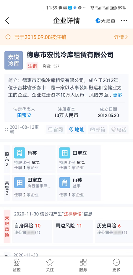 天眼查显示的宏悦公司注销时间