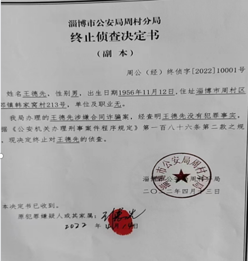 调查中,记者首先找到受害人了解情况。受害人王长武、张启祖、孟祥刚、尹杰、樊建强分别向记者递交了被骗的相关证据,并介绍了被骗前后所发生的情况:他们是在2017年底至2019年6月期间,通过别人介绍先后认识的王德先,王德先诈骗他们的过程也是一样的,都是谎称他与山东五洲国际商业运营有限公司有特殊关系,可以享受特殊政策购买“山东五洲国际家居博览城”住宅与临街商铺,他本人在五洲国际项目中持有10%的股份,并出示了他入股投资山东五洲国际商业运营有限公司10%股份的200万元收据。王德先承诺以每平方米低于实际售价50%的价格,卖给他们沿街商铺与住宅,并向他们出具盖有山东五洲国际商业运营有限公司公章的“特殊政策购房决定书”,且再三保证就算购买不上房屋,购房款保证不会有任何损失。在王德先编造的谎言诓骗下,几个人先后把自己多年的积蓄及向亲朋好友借的购房款,分别打进了王德先指定的账户。付款后,王德先分别给他们出具了一份上面加盖了“山东五洲国际商业运营有限公司”及“山东煜泰房地产开发有限公司”公章的《特殊政策购房决定书》,并开具了加盖“五洲国际商业运营有限公司财务专用章”的“工商服务业统一收款收据”。半年以后,他们多次向王德先询问何时交房,王德先总是答复很快就能交房。一直拖到2020年11月底,他们请律师到山东五洲国际商业运营有限公司了解情况,才知道他们的购房款并没有交给这个公司,这一切的说法都是王德先编造的谎言,且公司的公章、财务专用章都是假的。他们再次追问王德先时,王德先承认他所收的购房款未交给山东五洲国际商业运营有限公司,也承认了所盖的公司公章、财务专用章都是假的。他们多次向其催要购房款,王德先除了退还王长武20万元、孟祥刚10万元、樊建强32万元外,其余购房款被诈骗团伙私分。至此,以王德先为首的诈骗团伙即不给房子也不退房款。无奈之下,他们5人到淄博市周村区公安分局经侦大队,举报王德先、石玉第、王可可、王丽、张永会诈骗团伙编造谎言,制作虚假购房决定书,违法私刻公章、财务专用章,诈骗购房款的犯罪事实。周村区公安分局经侦大队随即将犯罪嫌疑人王德先、石玉第立案侦查。但办案警官陈淼很快将诈骗团伙首犯王德先终止侦查,声称王德先没有犯罪事实,并给王德先出具了《终止侦察决定书》。经过受害人多次举报反映,周村区公安局经侦大队通过更换办案警官的办法,终于又将王德先进行立案调查,立案决定书却始终不给受害人,并且还立即给王德先办理了取保候审,诈骗团伙的账户也没有冻结,不冻结账户的理由竟然是:无法证明犯罪嫌疑人账户中的钱款就是诈骗受害者的钱。受害人张启祖有一次去向王德先追债,王德先说:“他们公安要是把我逼急眼了,我全部把他们都掀出来。”王德先作为诈骗团伙的首犯,之所以说话这么有底气,而且很快就能被无罪释放,完全是因为办案警官的包庇所致,有警察当保护伞才能这样有恃无恐。如此现状却害惨了受害人,他们个个损失惨重,债台高筑,欲哭无泪。尤其是张启祖的大姨姐李元珍夫妇被骗的最惨,因为想买新房卖了自己原来住的老房子,还向别人借了一些钱,都被王德先骗走了,现在居无定所,只能到处流浪无家可归,还要想办法还债。由于经济压力太大,李元珍的丈夫陈连梓得了精神病至今住院治疗。在社会主义法治国家里,竟然会发生如此惨剧?实在是令人悲愤交加、唏嘘不止。