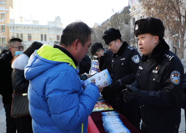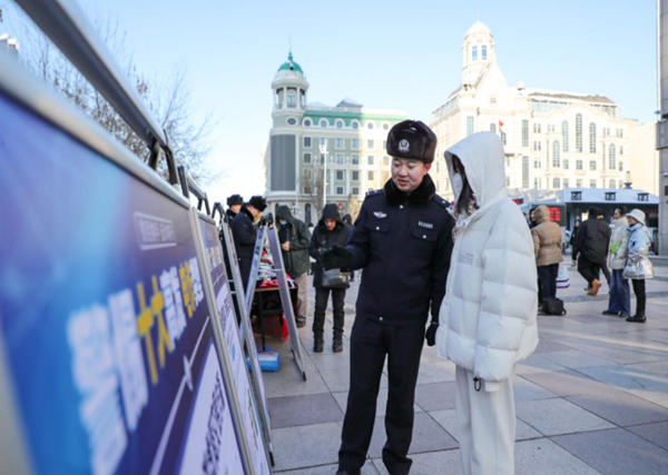 “未知链接不点击,陌生来电不轻信,个人信息不透露,转账汇款多核实......”12月1日中午,黑龙江省哈尔滨市公安局反诈民警和银行工作人员在中央大街为市民游客介绍讲解反诈法、个人信息保护法等相关内容。今年12月1日,是《中华人民共和国反电信网络诈骗法》正式施行1周年。为进一步增强群众防范电信网络诈骗意识,营造人人知法、人人守法的氛围,哈尔滨市公安局组织全市反诈战线开展反诈法集中宣传日活动。