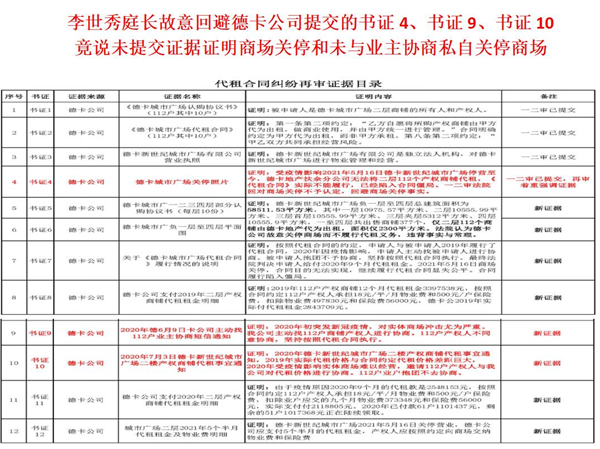 李世秀庭长对最高人民法院关于《依法妥善审理涉新冠疫情民事案件若干问题的指导意见(一)置若罔闻。我公司提交的(书证4(商场关停照片)、书证9:2020年6月9日德卡公司主动找112户业户协商的短信通知,书证10:2020年7月3日德卡新世纪城市广产权商铺代租事宜通知)三份关键证据故意回避,却说德卡公司未提交证据证明德卡城市广场无法继续经营,又未与魏东等101人协商大成一致即擅自将德卡城市广场关闭,可见李世秀庭长故意的违背事实,枉法裁判,并且对德卡公司提出的中止履行代租合同、待商场重新营业后再按照实际价格代租的诉求不予理睬。这样既能平衡双方的利益关系,也能挽救一个民营企业,李世秀庭长对此却只字不提。