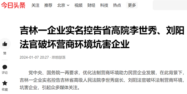 党中央、国务院一再要求,优化法制营商环境助力民营企业发展,在此背景下,吉林一企业实名控告吉林省高级人民法院李世秀庭长、刘阳法官破坏法制营商环境,坑害企业,引起众多媒体关注。