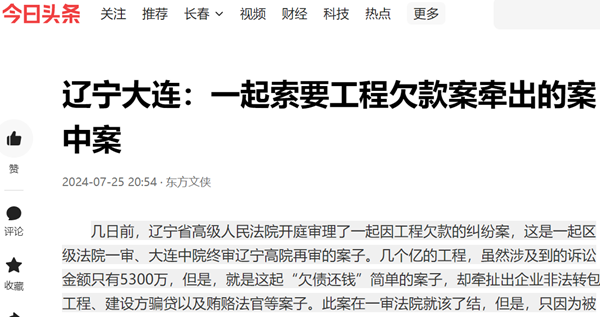 讨要的5300万没有了,李先生当然不能服,于是上诉到大连市中级法院,到了这里又出现了另一种情形,这大连中院将李先生的工程认定为“内部承包”,但管理费照收。
