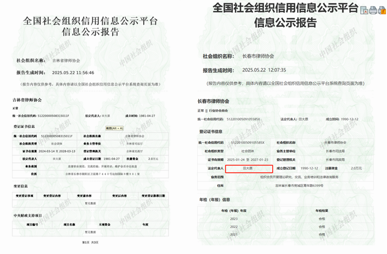 变更登记拖延,截至2025年5月,长春市律协仍未完成法定代表人变更,更是远超《社会团体登记管理条例》规定的30日期限。长春市律师协会每年的年检是怎么通过的?长春市司法局王承伟局长、王云飞副局长是怎么监管的?还是另有隐情?疑似有重大利益输送存在。