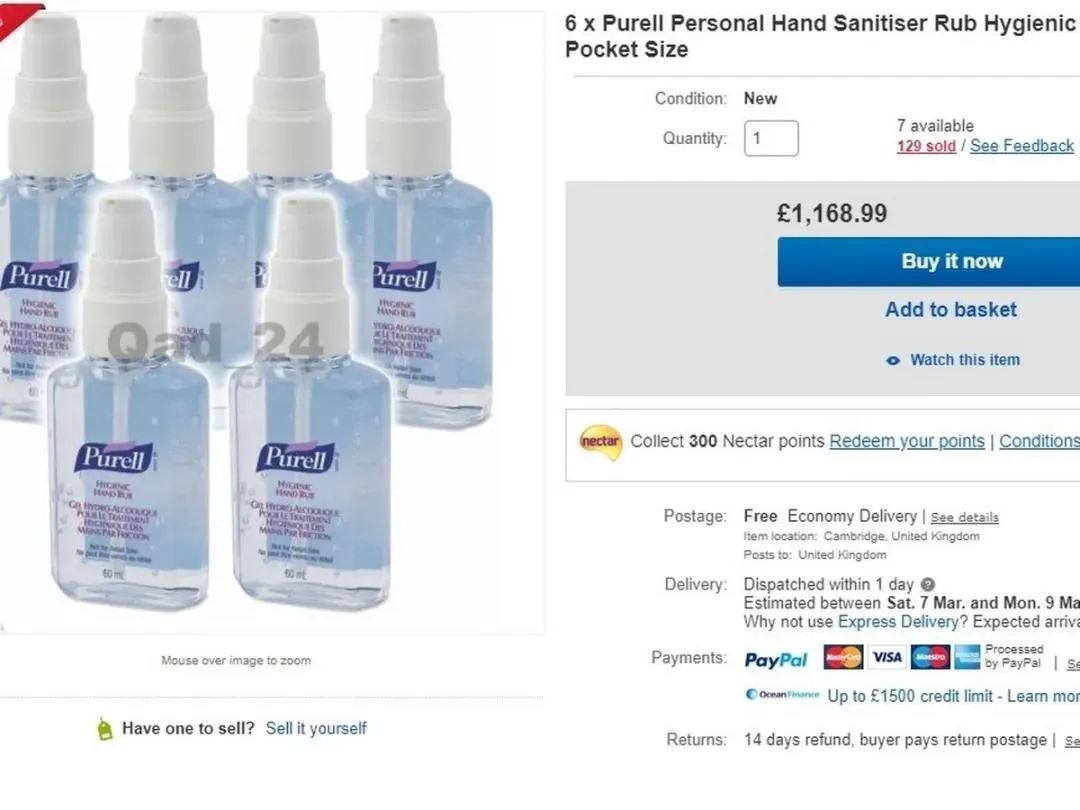 国外电商平台销售的消毒剂和洗手液。(网络截图)