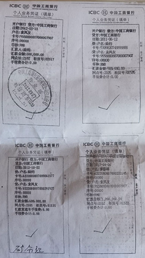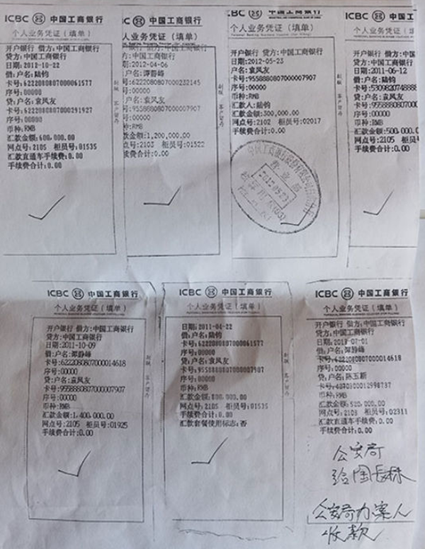 图片为袁凤友敲诈勒索的汇款证据