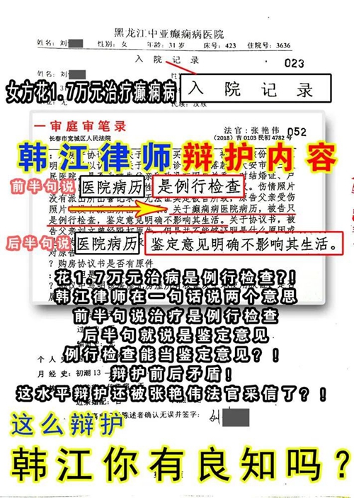 女方律师韩江和宽城区张艳伟女法官多次沟通后(请韩江律师介绍一下怎么沟通的?同行也想学学),张艳伟法官判决离婚,四岁宝宝抚养权判给有癫痫病犯病生活不能自理、引领亲爹刘文打伤71岁公爹(我爸)的女方刘某,二审长春中院董惟一、高心、宫平三位女法官维持原判(宫平、宫正、宫开都是高大尚的名字),宽城区检察院女检察官不监督抗诉。