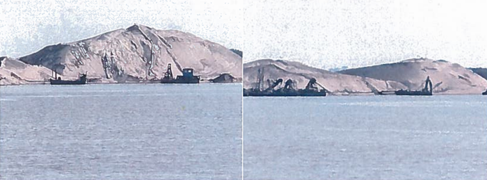 (图为河床上堆积的大量砂子严重影响泄洪)