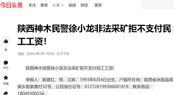 陕西神木民警徐小龙非法采矿拒不支付民工工资!