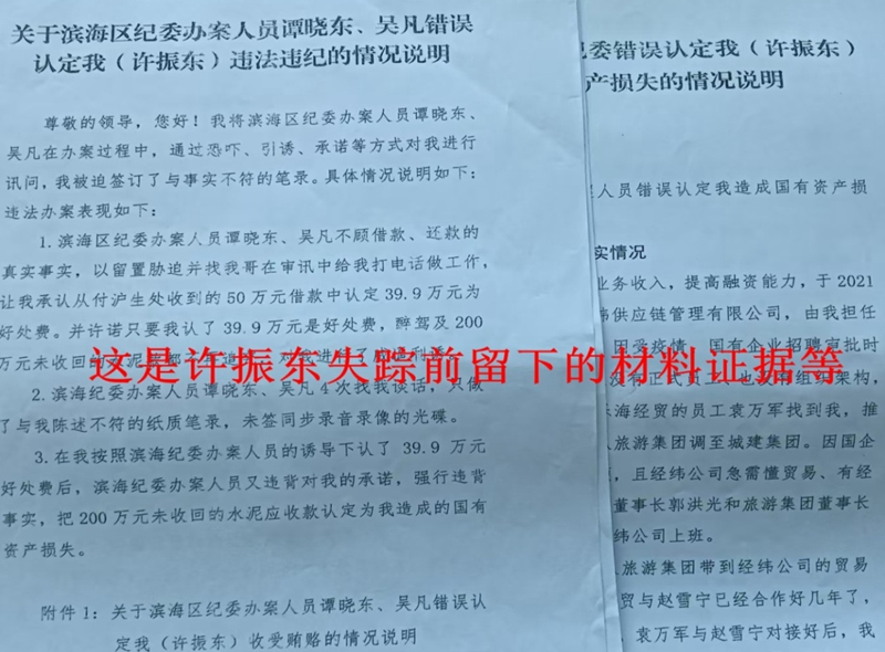 下面是许振东失踪前留下的反映材料和证据(有些内容重复啰嗦,整理时删去,不影响事实情况):