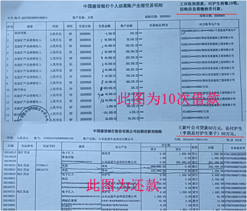 以上事实证明材料有:1.纪委对我和付沪生10月11日第一次询问笔录;2.王田收到付沪生银行转账的流水;3.王田缴纳首付款的流水;4.付沪生与房产中介挂网卖房的聊天记录;5.辰星公司给付沪生的转账记录(证明材料附后)以上足以证实我与付沪生之间是借贷关系,并非收受贿。