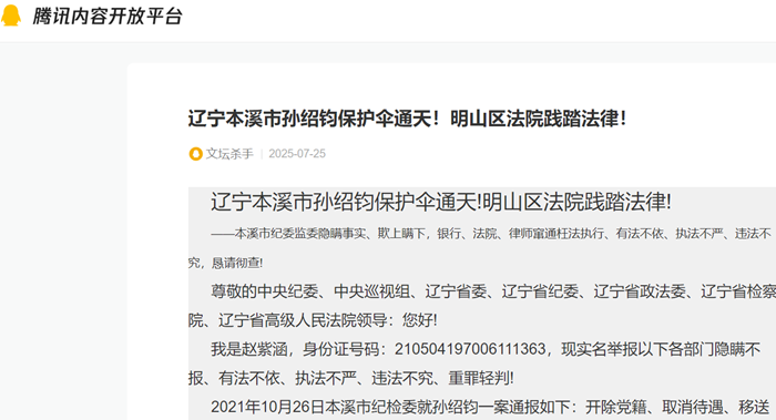 辽宁本溪市孙绍钧保护伞通天!明山区法院践踏法律!