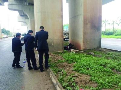 “我看见有个车轮卡在隔离带水泥柱之间,上前一看那里躺着一个人,我就赶紧报警了。”海口市秀英区高龙村村民陈先生说。