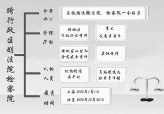 2014年12月28日,上海,全国首个跨行政区划法院、检察院——上海市第三中级人民法院、上海市人民检察院第三分院正式成立;两天后,北京,跨行政区划的北京市第四中级人民法院、北京市人民检察院第四分院成立。