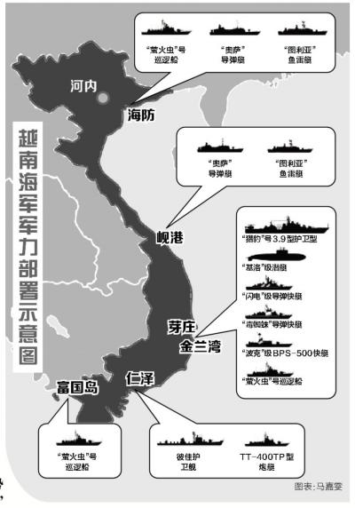 越南海军总体实力不算强,只有少量护卫舰、护卫艇、扫雷艇等轻型舰艇。鉴于越南南北狭长、拥有长达3260公里海岸线的地理特点,发展大型水面舰艇似乎是其海军战略的优先选择。